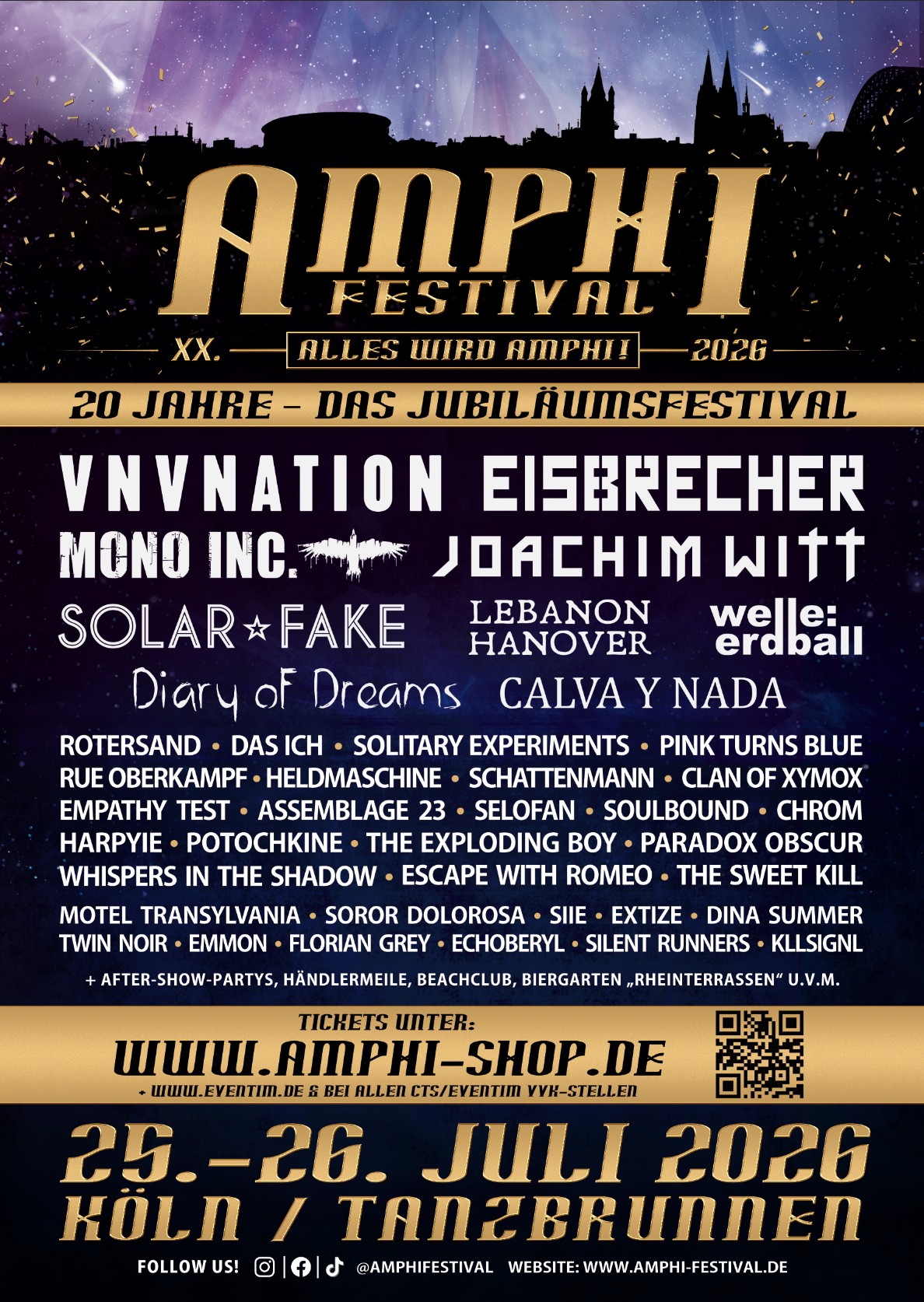 mit großer Vorfreude können wir euch heute die finalen Bands für das Amphi Festival 2026 bekanntgeben.