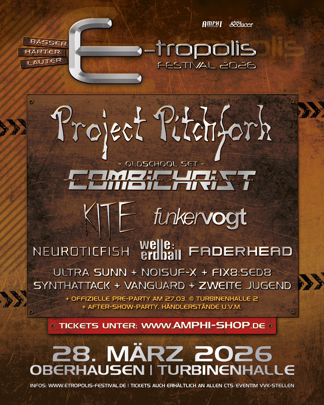 “From hard-hitting EBM & industrial beats to rousing electropop and elegant synth sounds, the E-tropolis Festival is fully dedicated to the dark side of electro.